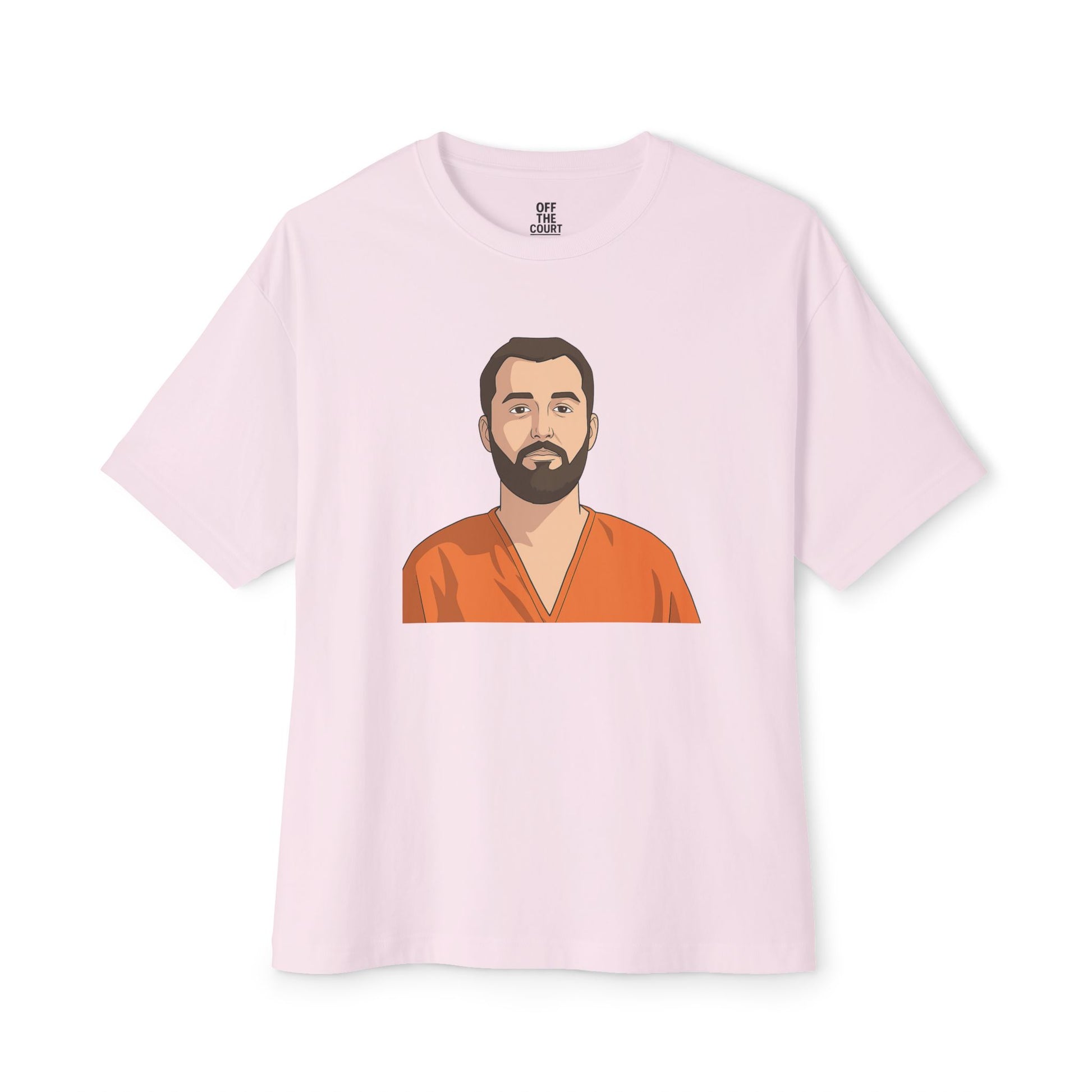 Straight to the mugshot. The Booking Tee captures one of the wildest off-the-court headlines and locks it into parody form. Oversized, bold, and built on heavyweight cotton, this tee is for the fans who know that sometimes the biggest plays don’t happen on the field — they happen in the police report.